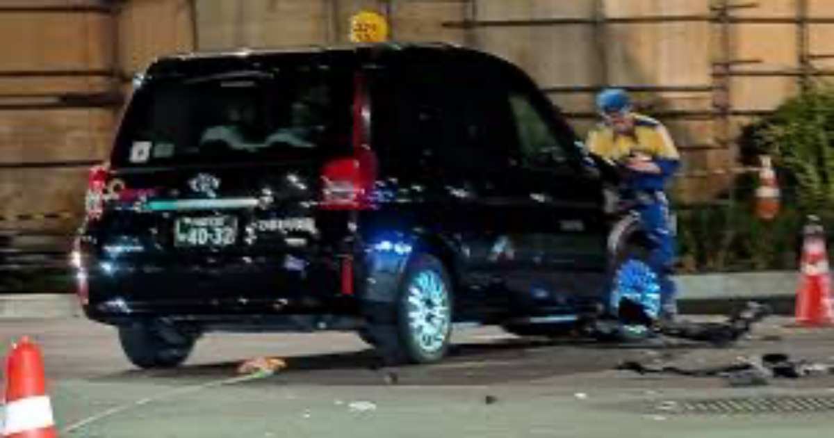 - 事故直後のタクシーとバイクの位置関係が鮮明に写っている写真